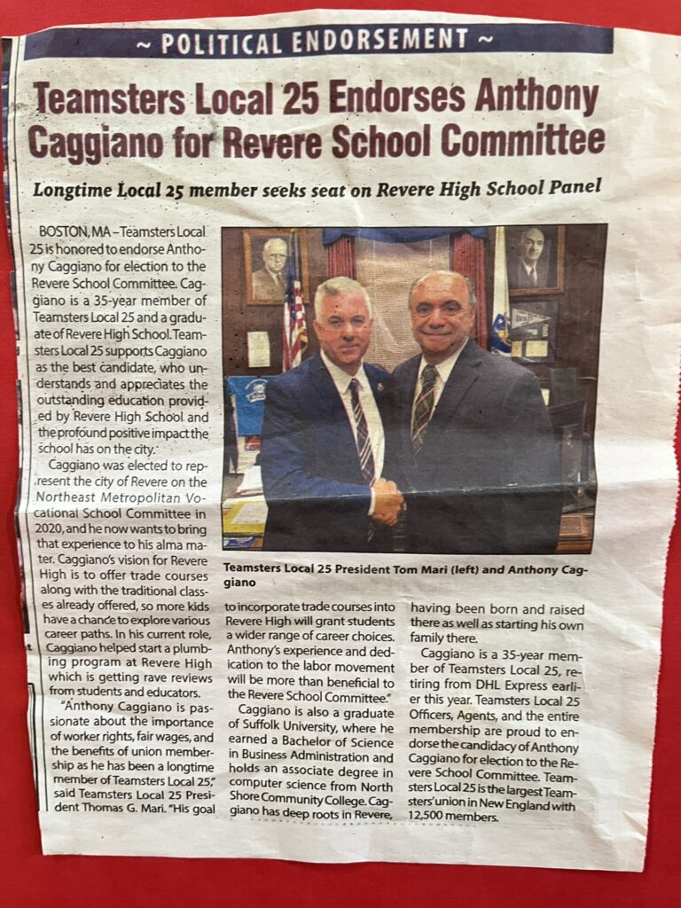Vote Anthony Caggiano Revere School Committee Ward 3